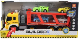 Součástí balení jsou 4 plastová autíčka, která lze snadno naložit i vyložit. Díky měřítku 1:16 a rozměrům cca 40 × 12 cm je kamion dostatečně robustní, ale zároveň dobře ovladatelný pro malé dětské ruce.