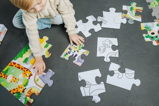 Na zadní straně puzzle se nachází omalovánka se zajímavými motivy, které děti mohou vybarvit a rozvíjet tak svou kreativitu.