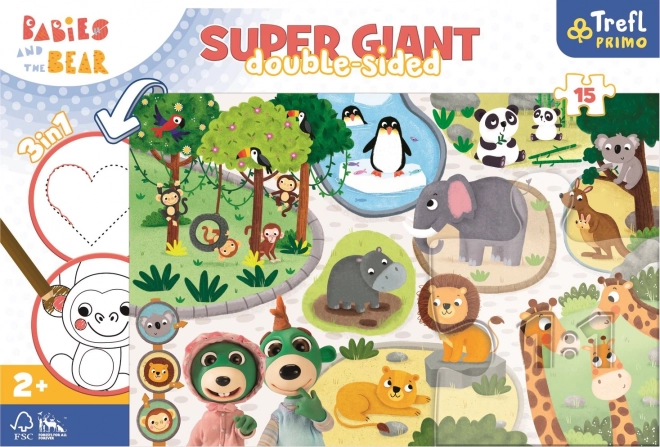 Bobaski v ZOO je multifunkční hračka, která nabízí hned tři úžasné možnosti, jak strávit čas. Tato obrovská układanka obsahuje 15 velkých dílků, skvěle vhodných pro malé ruce. S její pomocí děti rozvíjejí své manuální dovednosti, kreativitu a postřeh.