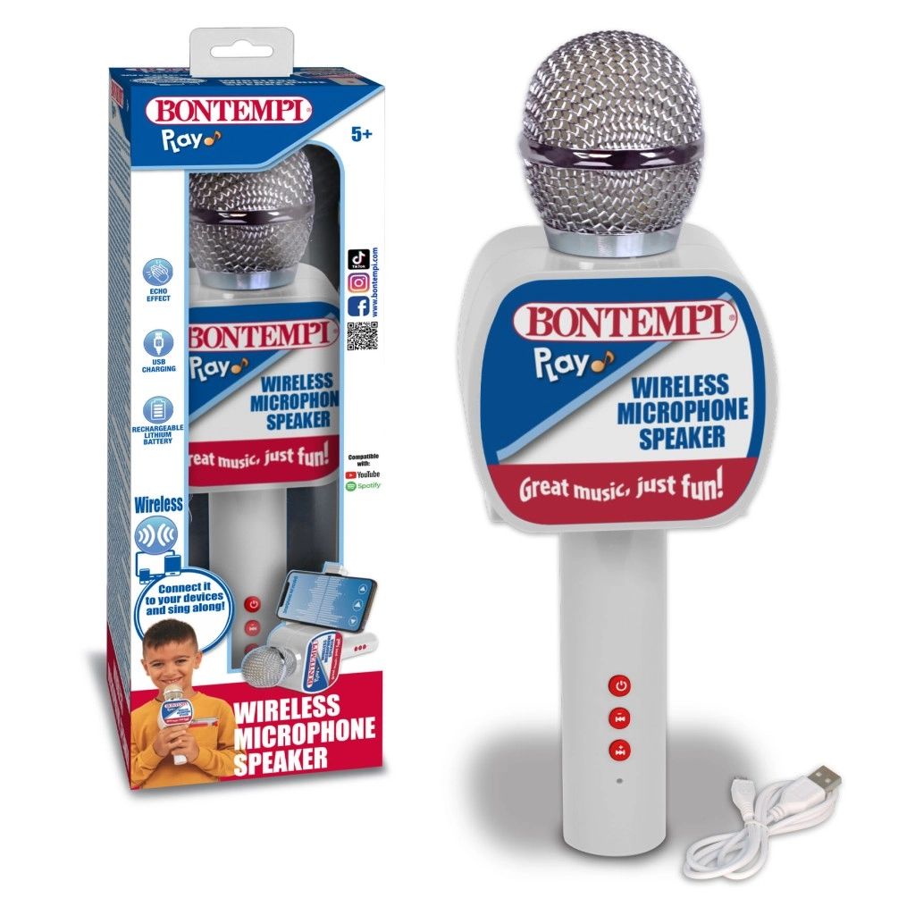 Užijte si karaoke kdykoli a kdekoli s tímto praktickým bezdrátovým mikrofonem. Díky vestavěnému reproduktoru, bezdrátovému připojení a jednoduchému ovládání je ideální na domácí zpívání, párty i dětské oslavy. Držák telefonu a efekt ozvěny se postarají o ještě větší zábavu.
