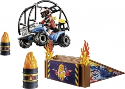 Rozjeďte to naplno s kaskadérskou show od PLAYMOBIL! Sledujte, jak kaskadér vyrazí na čtyřkolce, prosviští ohnivou rampou a předvede dechberoucí přemet. Sada je skvělým vstupem do světa Stunt Show a láká ke kreativnímu vyprávění příběhů.