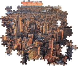 Puzzle zobrazuje slavný městský pohled z New York City při západu slunce, ideální pro milovníky urbanistické krásy.