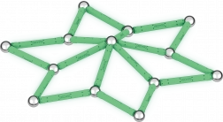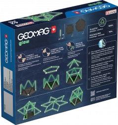 GEOMAG Glow je originální magnetická stavebnice, která umožňuje vytvářet neomezené množství konstrukcí pomocí magnetických tyček a ocelových kuliček. Díky fosforeskujícím dílkům budou tvoje modely po nasvícení ve tmě krásně zářit – ideální pro zábavné experimentování i atraktivní výuku.
