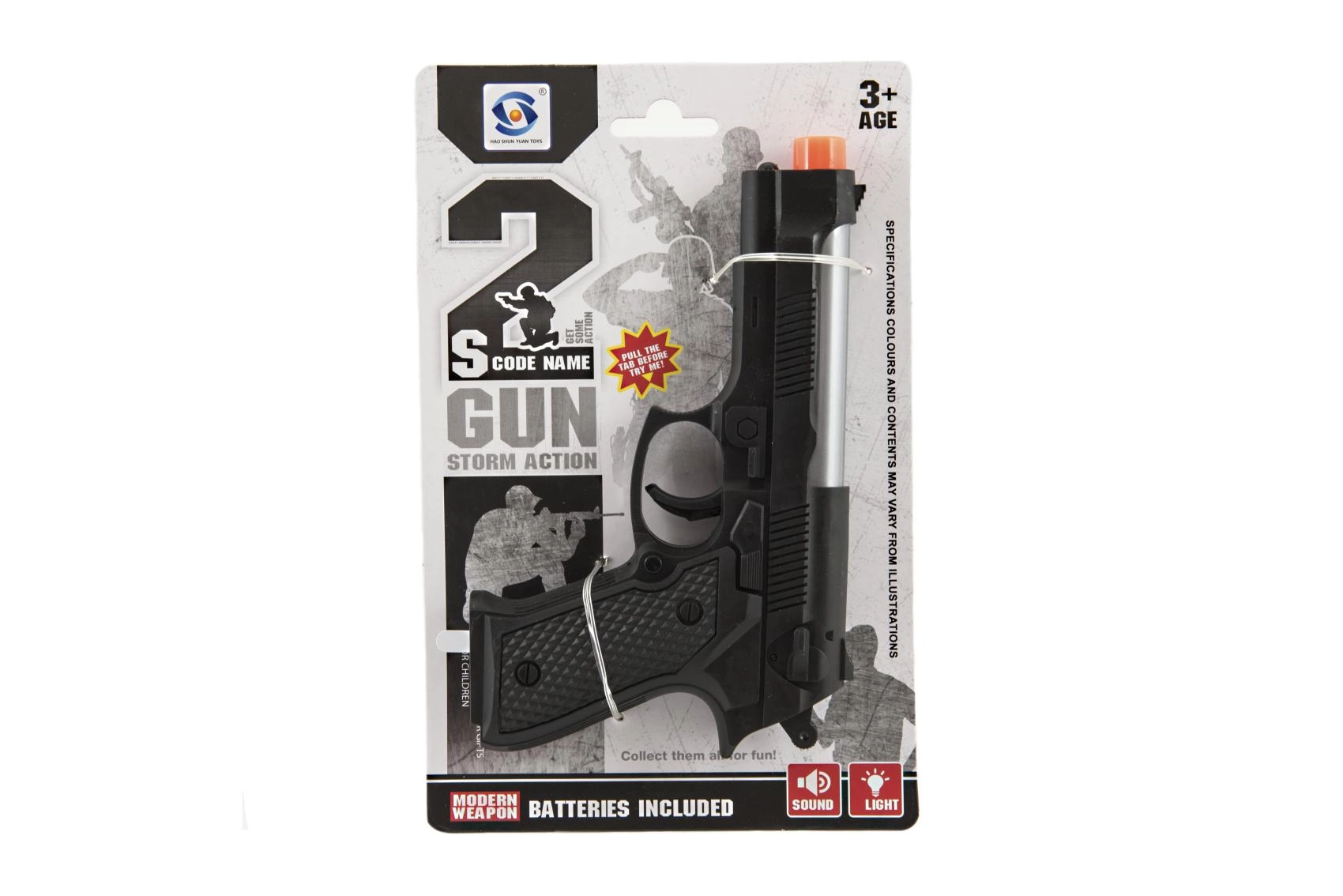 Tato realisticky vyhlížející plastová pistole potěší všechny malé fanoušky akčních her. Díky efektům světla a zvuku přináší ještě větší porci zábavy a podporuje fantazii i kreativní hru. V balení najdete vše potřebné – 2× AG10 baterie jsou již součástí.