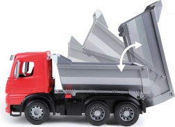 Realistický model vyklápěcího vozu LENA MERCEDES AROCS s délkou 45 cm nabízí robustní konstrukci, pozinkované ocelové osy 6 mm a sklopnou a uzamykatelnou korbu. Ideální pro hraní doma i venku, bezpečný pro děti od 3 let a s certifikací TÜV.