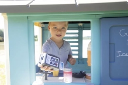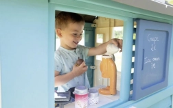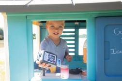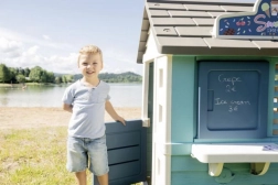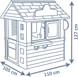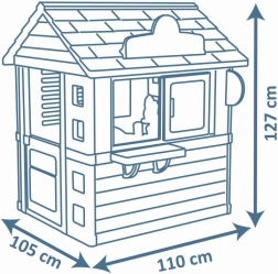 Domek je vybaven pevnými a stabilními dvojitými plastovými stěnami, které odolají i nepříznivému počasí a silnému větru. Rozměry 98 x 110 x 127 cm s celkovou výškou 127 cm umožňují pohodlné hraní. Hračky splňují nejvyšší bezpečnostní kritéria.