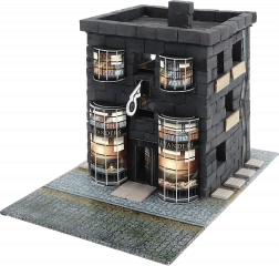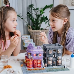 Stavte krok za krokem: lepte cihlu k cihle, řežte a přizpůsobujte prkénka, poté přidejte tematické doplňky pro autentickou atmosféru Příčné ulice. Díky vodou rozpustnému lepidlu je model opakovaně použitelný – jednoduše namočte, rozložte a stavějte znovu. Sadu můžete kombinovat s dalšími sety BRICK TRICK HARRY POTTER a vytvořit rozsáhlý svět čar a kouzel včetně hradu Bradavice.