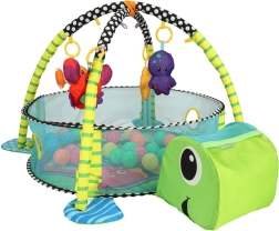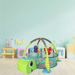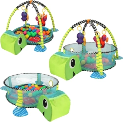 dětská hrací podložka 3v1 želva s ohrádkou a 30 míčky