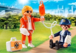 Objevte svět plný fantazie a her s Playmobil Duo Packem. Tato jedinečná stavebnice nabízí dvě postavičky: pohotovostního lékaře, který je vždy připraven pomoci, a policistku, která potřebuje lékařskou pomoc. Každá figurka je detailně propracovaná a přichází s příslušenstvím, které obohatí každé herní prostředí.
