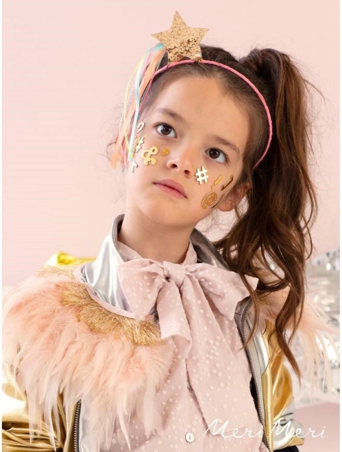 Čelenka Padající Hvězda je elastická čelenka s textilním potahem a třpytivou hvězdou s barevnými stužkami, kterou ocení malí i velcí.