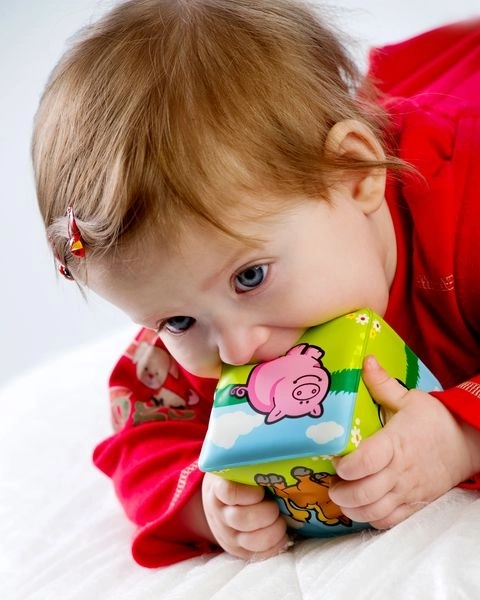 Objevte hravou kousací kostku Moje první zvířátka, která díky barevným ilustracím zaujme dětskou pozornost a podpoří jejich první objevování světa. Měkký materiál je šetrný k dásním, ideální pro období prořezávání zoubků, a bezpečný už od 0 měsíců.