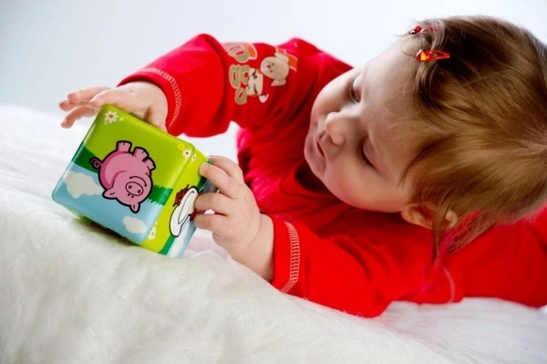 Kostky lze snadno uchopit, stavět a kombinovat, což zlepšuje jemnou motoriku a koordinaci oko–ruka už od útlého věku.