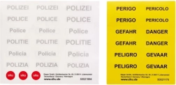 - Dodává se s fotoluminiscenčními nálepkami, které upozorňují na nebezpečí v několika jazycích.