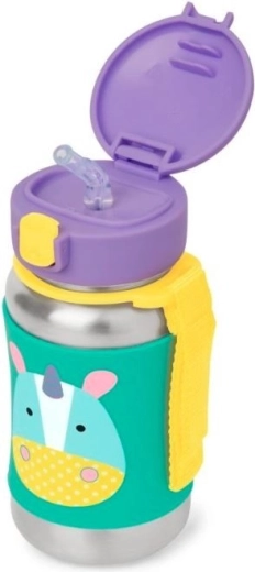 Oblíbená láhev Skip Hop Zoo v roztomilém designu Narvala podporuje samostatné pití dětí od cca 12 měsíců. Nerezové provedení je odolné, snadno se udržuje a díky neklouzavému detailu je příjemné i pro malé ručičky. Zavírací víčko chrání brčko před nečistotami, takže je láhev hygienická i na cestách.