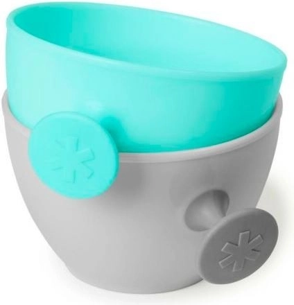 Sada dvou praktických misek SKIP HOP Easy Grab v odstínech šedé a tyrkysové je navržena pro pohodlné a čisté krmení. Jedinečná ergonomická rukojeť zajišťuje jisté uchopení jednou rukou, víčka se postarají o bezpečné přenášení i skladování.