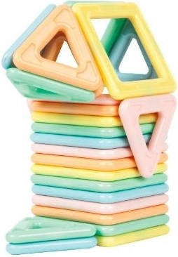 Sada obsahuje 18 čtverců a 12 trojúhelníků v pastelových barvách, které umožňují stavbu rozmanitých modelů.