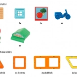 Se stavebnicí Magformers Městečko Tržiště můžete stavět různé architektonické stavby dle vlastní fantazie. Obsahuje 14 magnetických tvarů a 8 funkčních doplňků, včetně malé prodavačky, které umožňují tvořit poloodkryté průřezy, kde jsou z jedné strany vidět vnější kontury stavby a z druhé interiérové řešení.