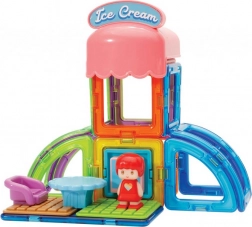 Stavebnice Magformers Městečko Cukrárna se skládá z 14 magnetických tvarů a 8 funkčních doplňků. Umožňuje vytvářet architektonicky rozmanité stavby cukráren podle vlastní fantazie. Přidáním dalších dílků Magformers budou vaše stavby ještě větší a různorodější. Výsledné stavby mají formu poloodkrytého průřezu, kde je patrné vnější i interiérové řešení, které lze obměňovat.
