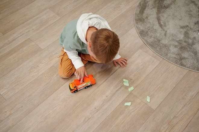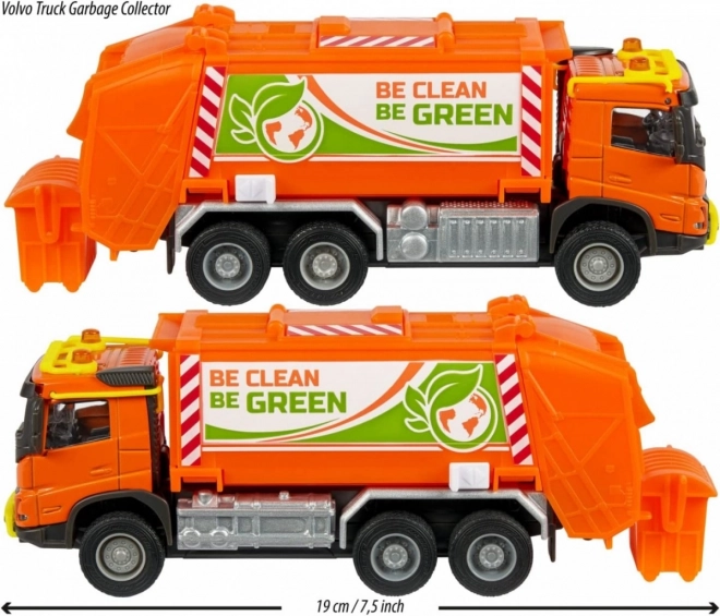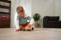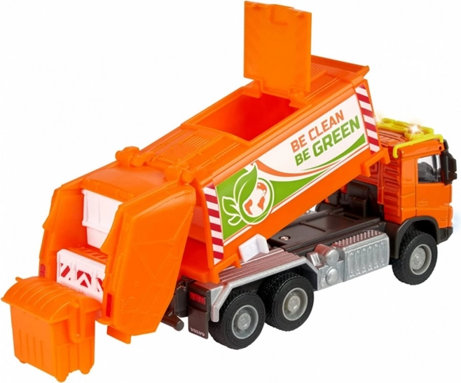 Model v měřítku 1:43 má pracovní zvedací koš, otevírací poklop a funkci vyklápění pro snadné vysypání odpadu. Gumové pneumatiky s běhounem si poradí s různými povrchy a 2 efekty zvuku spolu s předními světlomety a mlhovkami dodají hře na autentičnosti. Součástí jsou i baterie 2× AAA (R03), takže zábava může začít okamžitě.