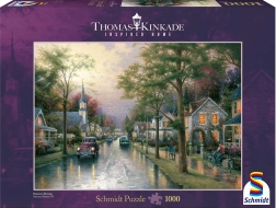 Užijte si uklidňující skládání s puzzle 1000 dílků od značky SCHMIDT s malebným motivem „Ráno v rodném městečku“ od Thomase Kinkadea. Kvalitní tisk, přesné výřezy a rozměr po složení 69,3 × 49,3 cm potěší každého milovníka puzzle.