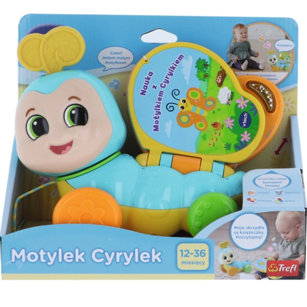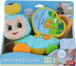 Po zatáhnutí za provázek se motýlek rozjede a doprovodí děti veselými zvuky a frázemi. Podporuje přirozenou touhu lézt a chodit.