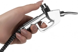 Připomíná klasický čerpací stojan, což dodává nápojovému servisu zábavný retro nádech.