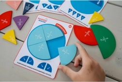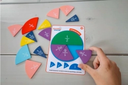 Tato didaktická pomůcka vede děti krok za krokem do světa matematiky a zlomků. Díky barevným dřevěným dílkům a přehledným kartám si děti dokážou představit velikosti zlomků, porovnávat je a správně je přiřazovat k obrázkům. Skvělé pro domácí učení i školní výuku.