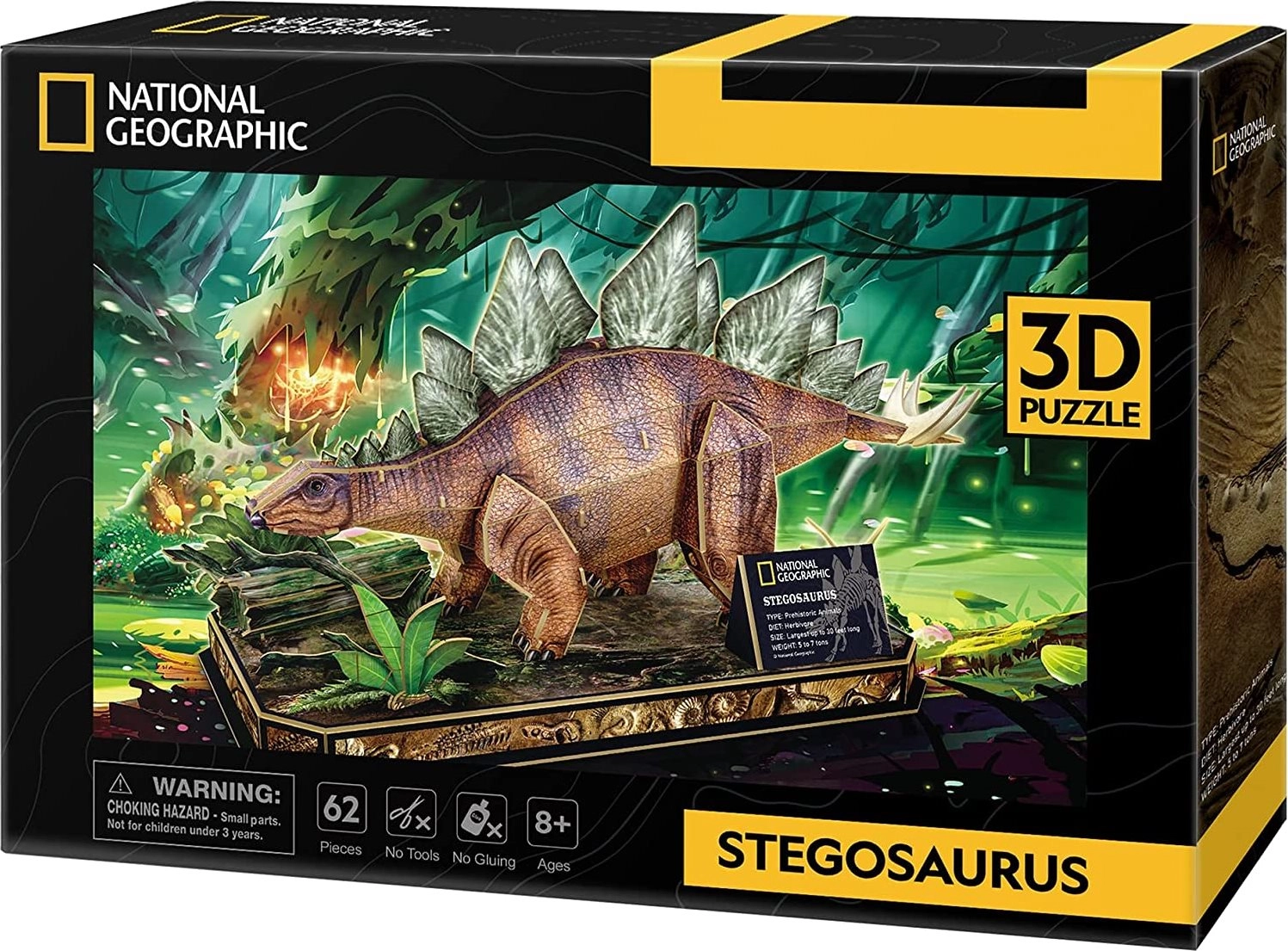 Objevte zábavnou a vzdělávací stavebnici – 3D puzzle NATIONAL GEOGRAPHIC stegosaurus. Sada obsahuje 62 předem vyřezaných dílků z papíru a pěnové desky, které jsou lehké, bezpečné a po sestavení vytvářejí realistický model na podstavci s muzejní jmenovkou.