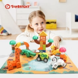 Safari Park pro malé dobrodruhy! Děti mohou vytvořit vlastní safari park s dřevěnými kostkami a puzzle od TOP BRIGHT, a připojit se k vedoucímu na každodenní prohlídku zvířecího parku.