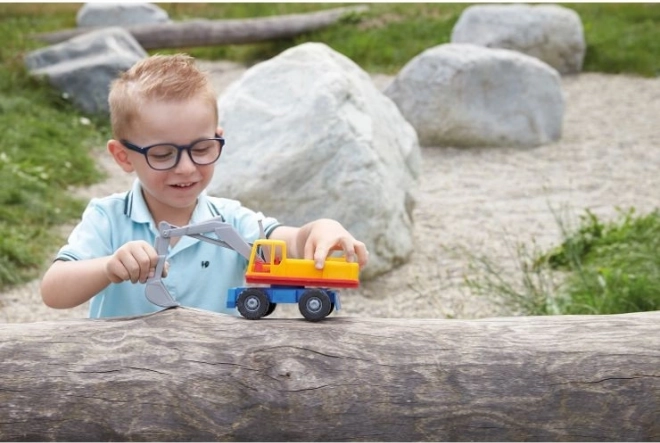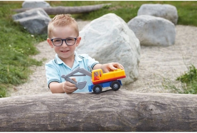 Tato koparka s realistickým vzhledem a pohyblivými částmi napodobuje skutečné stavební stroje.