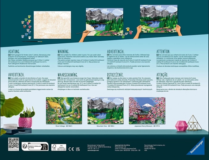 - Kompletní sada: kvalitní karton s předtiskem, akrylové barvy na vodní bázi, štětec, stojánek na kelímky, návod