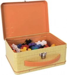 Součástí balení je odolný kovový kufřík s uchem a západkou, který udržuje kostičky pohromadě a usnadňuje jejich přenášení i skladování. Děti tak mají stavebnici vždy po ruce – doma, na výletech i u prarodičů. Pestrá paleta základních barev vybízí k nekonečnému množství nápadů a her. Upozornění: barvy dílků se mohou lišit od vyobrazení.