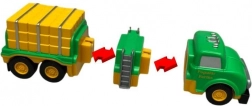 Jednotlivé díly se díky magnetům rychle a pevně propojí. Děti snadno přestaví traktor, kombajn i náklaďák podle vlastní fantazie.