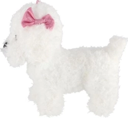 Roztomilý bílý plyšový pejsek o velikosti 21 cm je ideální první kamarád pro miminka i větší děti. Je vyroben z extra měkkého a hebkého plyše, má jemné růžové mašličky na ouškách a láká k mazlení od rána do večera. Perfektní pro klidné usínání a uklidňující objetí kdykoli během dne. Vhodné již od 0 měsíců.