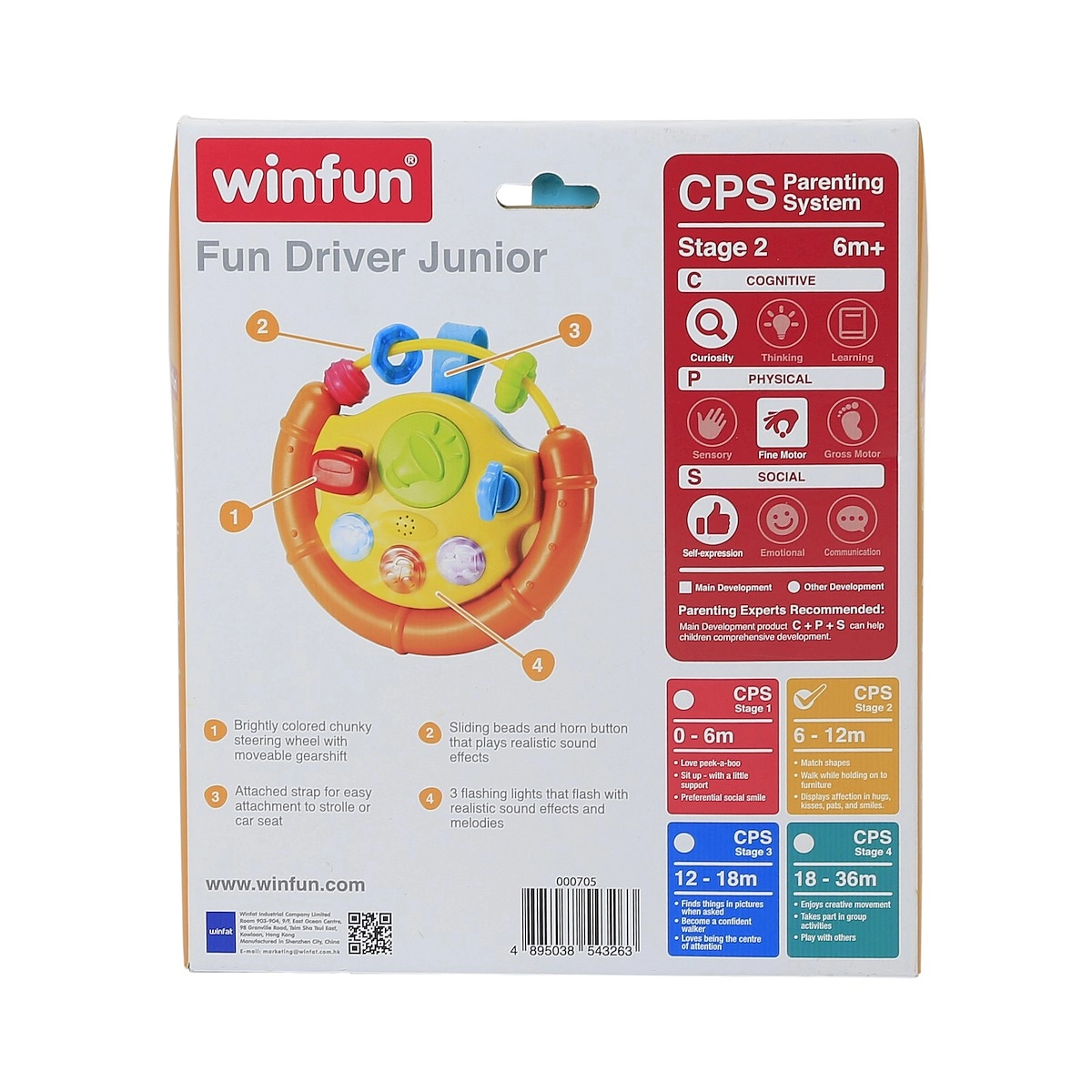 Tento barevný volant je ideální aktivizační hračka pro nejmenší. Děti zaujmou blikající světýlka, veselé melodie a různé hmatové podněty. Pohyblivé součásti jako kulička, autíčko či rybka lákají ke zkoumání a procvičují úchop i koordinaci oko–ruka.