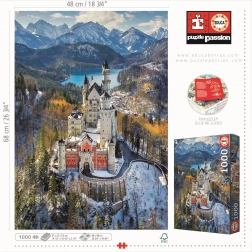 Složte magický pohled na zámek Neuschwanstein ze vzduchu s tímto 1000dílným puzzle značky Educa. Součástí balení je lepidlo FIX PUZZLE® zdarma, které pomáhá udržet váš dokončený výtvor v jedinečném stavu.