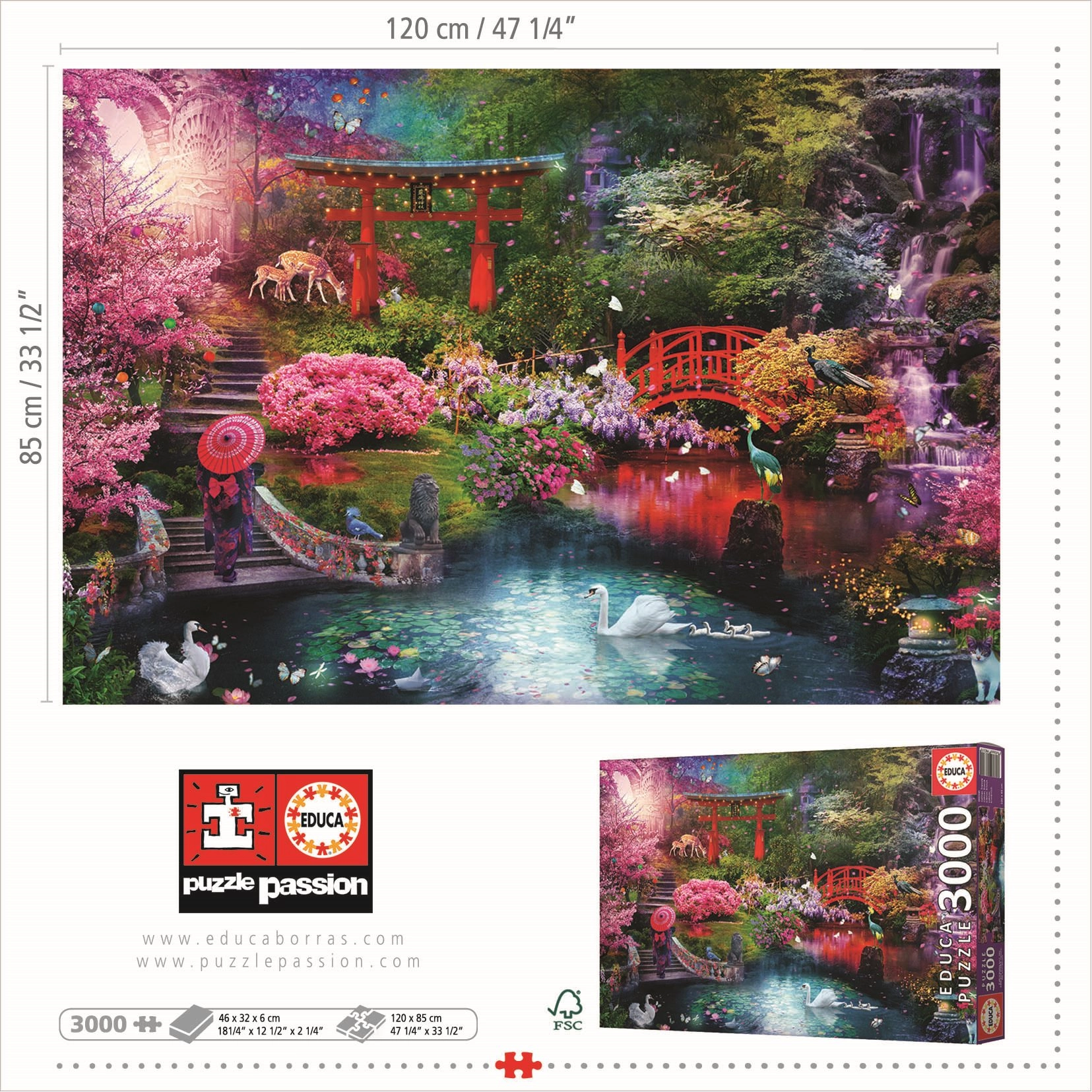 Užijte si hodiny soustředěné zábavy s puzzle EDUCA s motivem Japonská zahrada. Realistické barvy, ostré detaily a kvalitní tisk podtrhují výsledný dojem, který po složení skvěle vynikne jako dekorace interiéru.