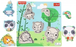 Tato kvalitní dřevěná vkládačka s oficiální licencí FISHER-PRICE přináší dětem zábavné motivy džungle a intuitivní učení. Základna s vyfrézovanými obrysy a černobílou grafikou napoví, kam který dílek patří, takže se děti snadno zorientují a mají radost z úspěchu.