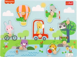 Roztomilá dřevěná vkládačka s licencí Fisher-Price přináší zábavu i učení v jednom. 8 barevných dílků s dřevěnými úchytkami se snadno drží, podložka s vyfrézovanými tvary a černobílou nápovědou pomáhá s umístěním. Skvělé pro rozvoj jemné motoriky, koordinace a rozpoznávání tvarů od 18 měsíců.