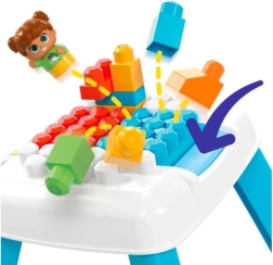 Tento stolík s funkcí zboření umožňuje stavět a jedním stiskem kostky rozházet, což podněcuje kreativitu a zábavné hraní.