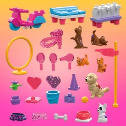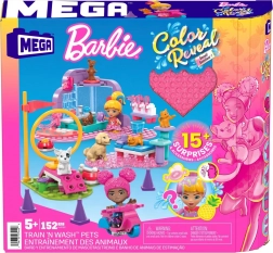 Sestavovací sada MEGA Barbie Color Reveal vám přináší svět plný tajemství a zábavy. S více než 15 překvapeními se děti ponoří do světa fantazie a kreativity, rozbalí mikropanenky a zažijí barevné odhalení. Můžete sestavit tréninkové stanoviště, kde se zvířátka mohou naučit nové triky, i péčovatelské stanoviště, abyste svým mazlíčkům poskytli nejlepší péči. Skvělou zábavu doplňuje stavba skútru na projížďky se zvířátky.