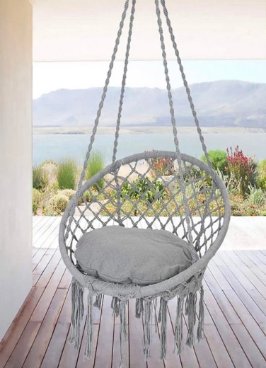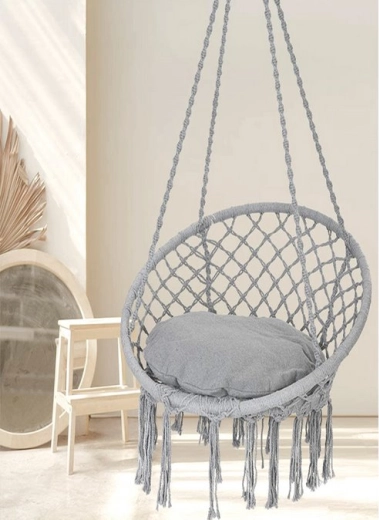 Závěsné křeslo hnízdo z makramé – Šedá