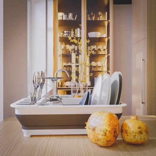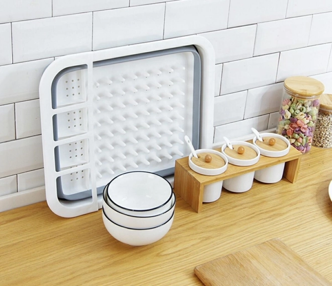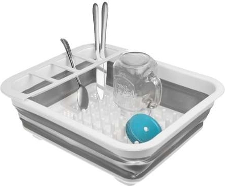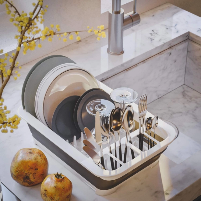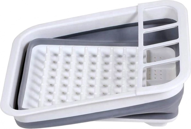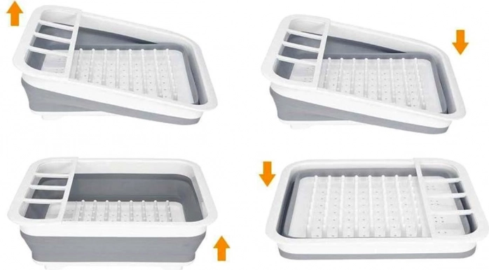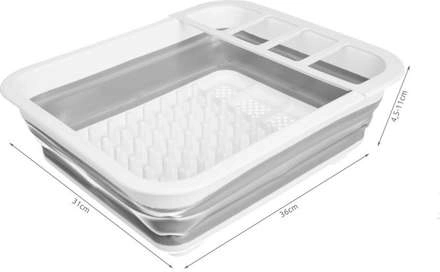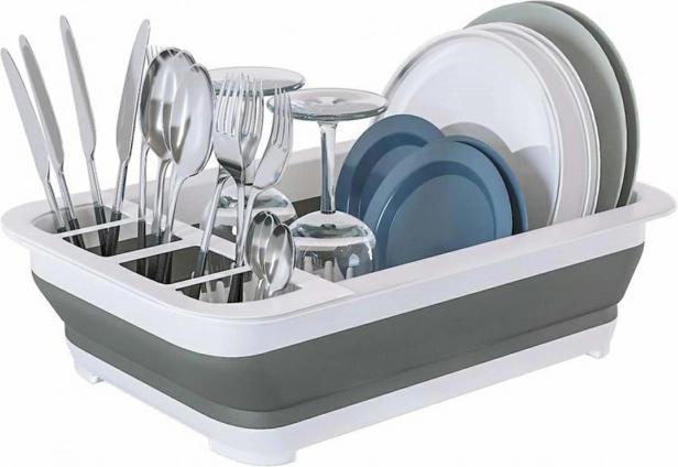 Po rozložení dosáhne výšky 12 cm, což vám umožní umístit do něj sadu příborů, sklenic a talířů. Díky dalším otvorům na spodní straně může také fungovat jako cedník.