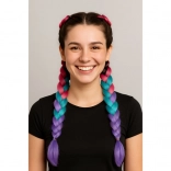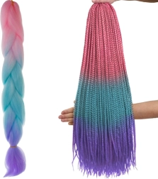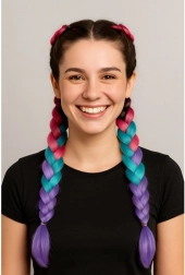 Dodejte svému účesu okamžitou změnu pomocí syntetických ombré copánků v pastelové kombinaci růžová–tyrkysová–fialová. Lehká vysokoteplotní vlákna jsou příjemná na nošení, nezatěžují vlasy ani pokožku hlavy a skvěle drží tvar po celý den. Ideální pro každodenní styling, party, cosplay i festivaly – připevníte a sundáte kdykoli chcete.