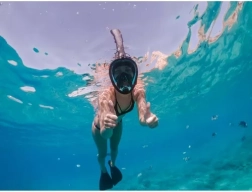 Plnotvářová maska pro šnorchlování kombinuje komfort a skvělou viditelnost. Konstrukce s velkým zakřiveným hledím přináší panoramatické 180° zorné pole, takže vám neunikne žádný detail. Inovativní systém proudění vzduchu umožňuje dýchat zcela přirozeně nosem i ústy, zatímco technologie Anti-Fog brání zamlžování i při delším používání.