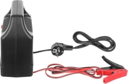 Praktická rukojeť, kompaktní rozměry a nízká hmotnost usnadňují skladování i přenášení. Přepínačem zvolíte správné napětí (6 V / 12 V) a robustní svorky zajistí jistý kontakt s póly baterie.