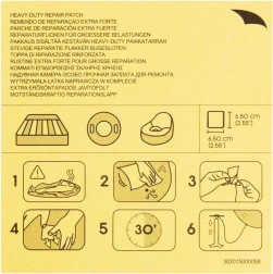 Doporučený postup: vyčistěte a osušte místo poškození, případně upravte velikost záplaty, odstraňte krycí fólii, pečlivě přitlačte a nechte cca 30 minut zatvrdnout.