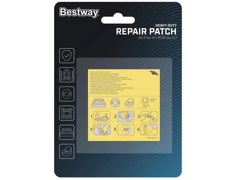 Vhodné pro nafukovací bazény, matrace, míče, čluny a další nafukovací příslušenství. Kompaktní balení se vejde do každého batohu, takže záplaty můžete mít po ruce kdykoli a kdekoli.