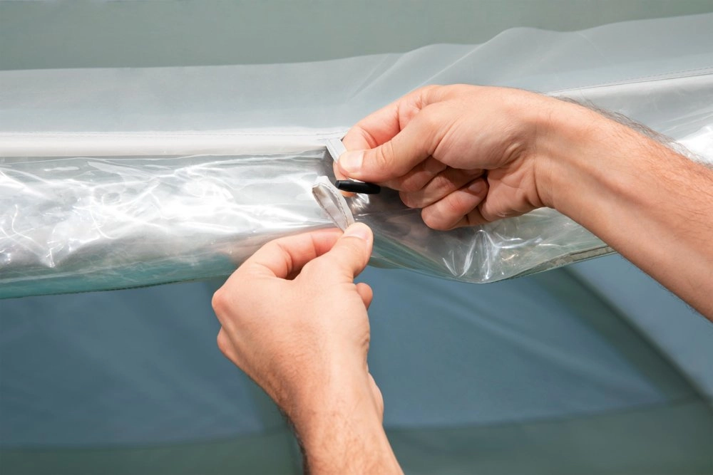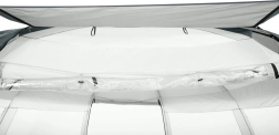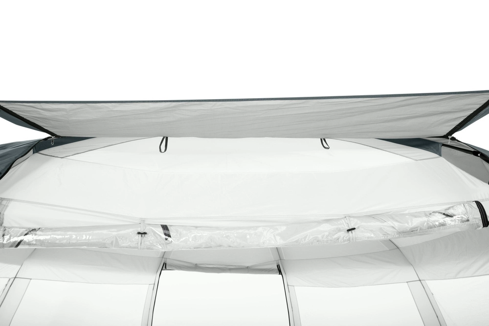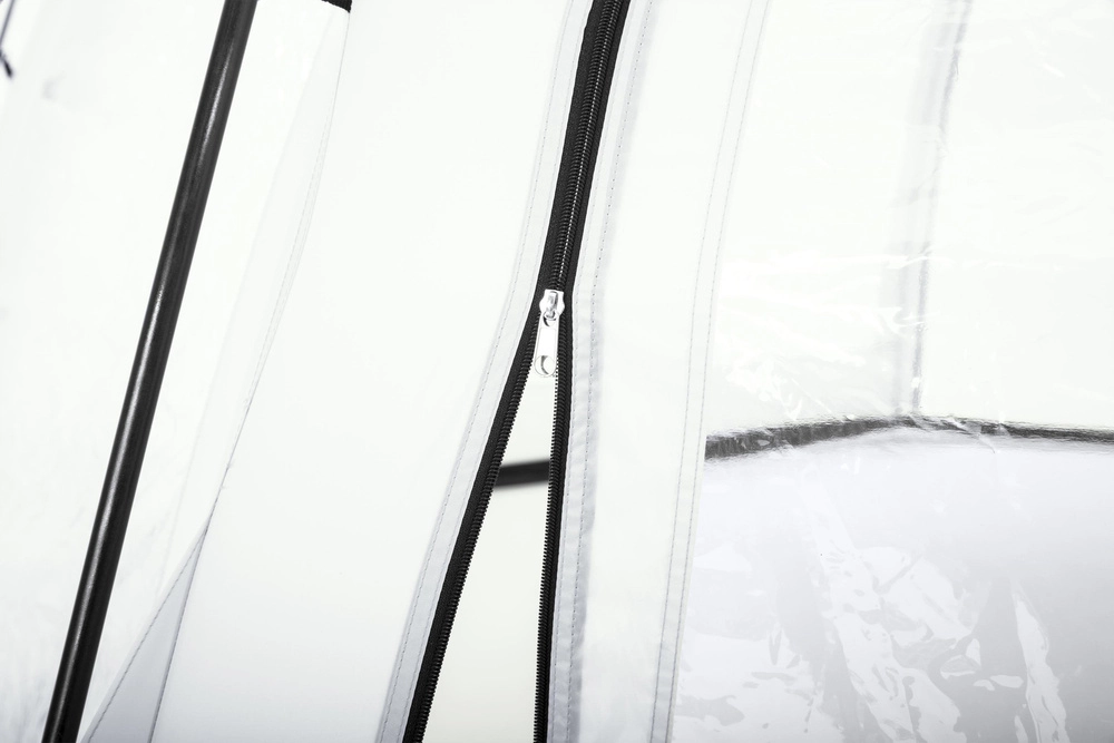 Ochranná kopule ve stylu stanu s dvouvrstvou konstrukcí udrží vodu i okolí bazénu čistší, omezí nečistoty unášené větrem a zajistí stín. Transparentní PVC okna propouštějí světlo a poskytují výhled, zatímco moskytiéry zajišťují cirkulaci vzduchu bez nežádoucího hmyzu. Stabilní rám s napínacími lany drží altán pevně na místě.