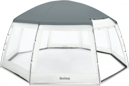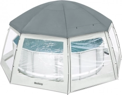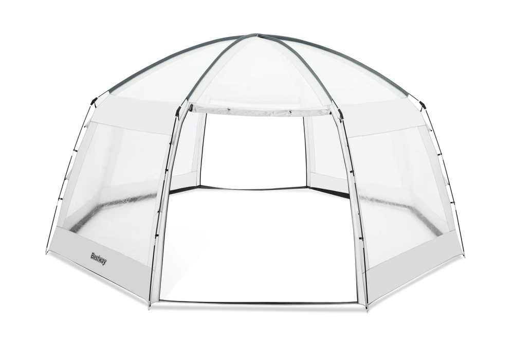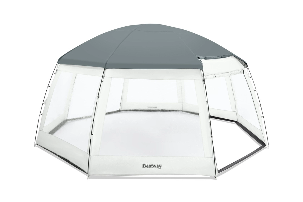 Vytvořte si na zahradě vlastní oázu klidu: tento prostorný altán pro bazén od Bestway chrání před sluncem, deštěm i hmyzem, poskytuje soukromí a díky výšce 295 cm umožňuje pohodlný průchod i s žebříkem. Je kompatibilní s vířivkami a nadzemními bazény až do průměru cca 4,88 m a zvládnete ho sestavit do 15 minut.